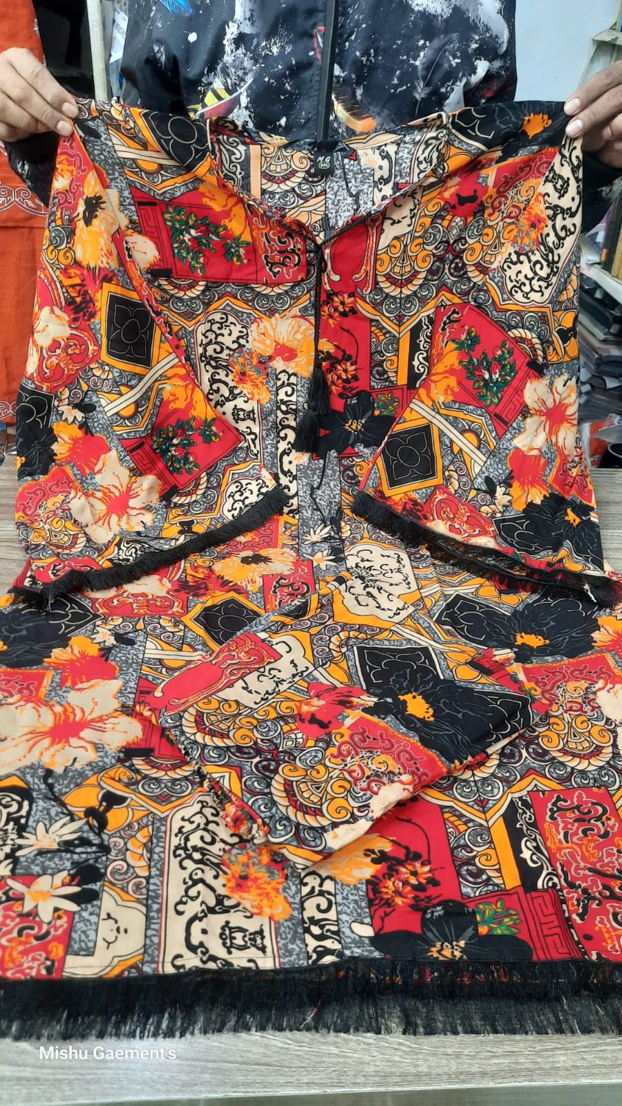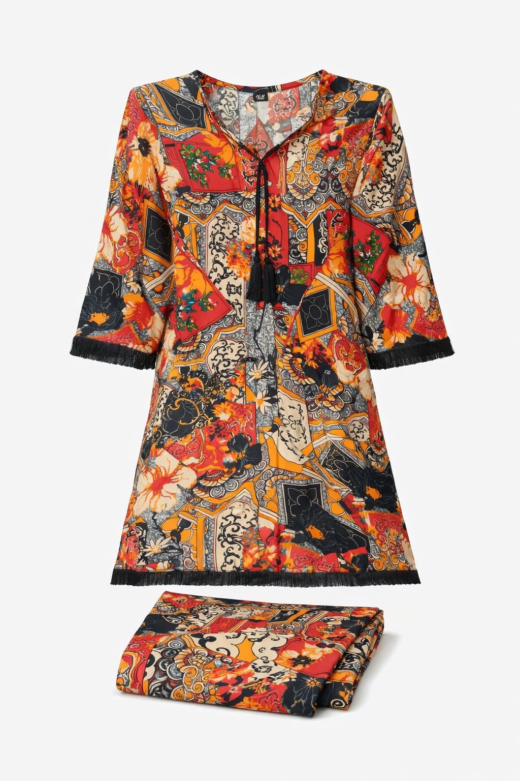 বোল্ড মাল্টি-কালার প্রিন্ট – কমলা, লাল, কালো ও বেইজ শেডের ট্রেন্ডি মিক্স